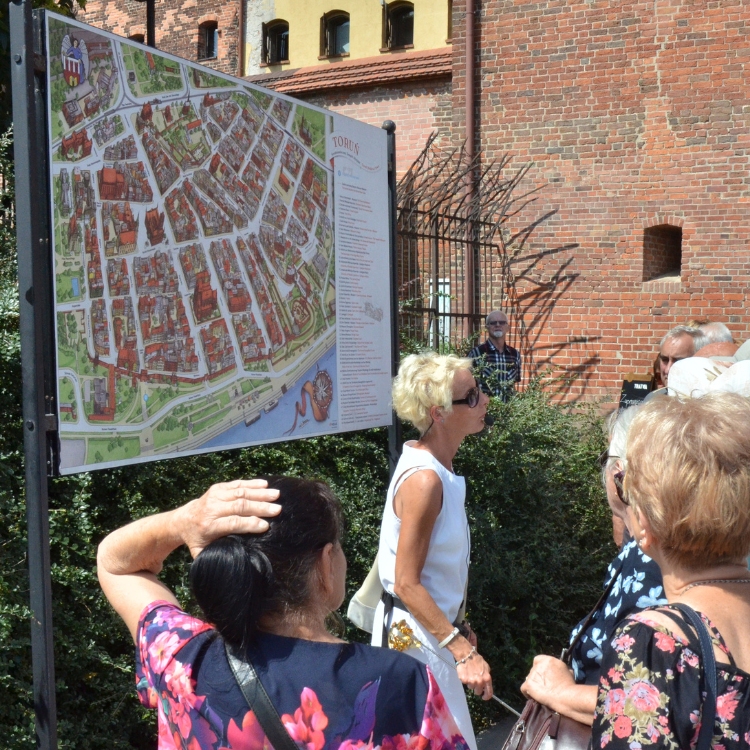 • średniowieczny system obronny z bramami, basztami, słynną Krzywą Wieżą, spichlerze, kamienice bogatych kupców hanzeatyckiego Torunia, Dom, a może domy Mikołaja Kopernika?, katedra Janów (wejście), Rynek Staromiejski z Ratuszem, Dworem Artusa, kamienicami, kościołami i słynnymi pomnikami.